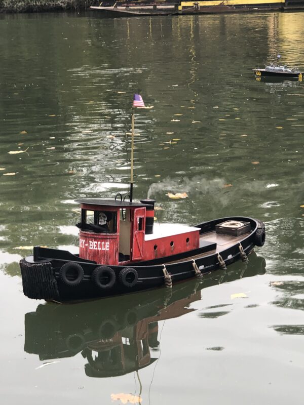 Neuestes Bild: Anfang Oktober 2025 mit fortgesetzter Farbgestaltung des Steuerhauses und Namensschriftzug. Ein Steuermann ist auch an Bord. Aufgenommen beim Modellbau-Club Mainspitze e.V.